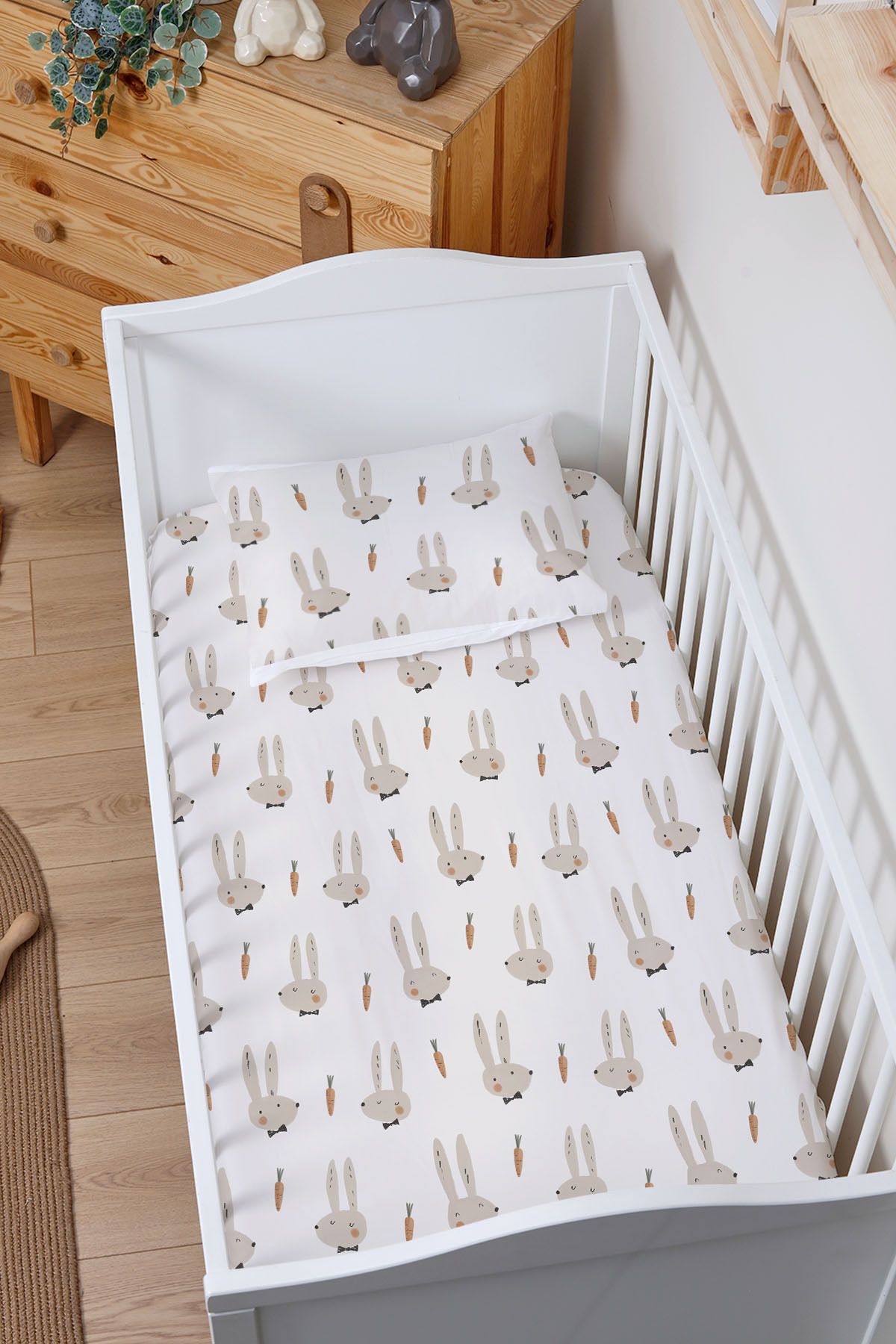 Organik Bebek Boy Lastikli Çarşaf Seti – Papyonlu Tavşan