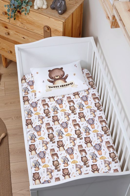 Organik Bebek Boy Lastikli Çarşaf Seti – Minik Dostum Ayıcık