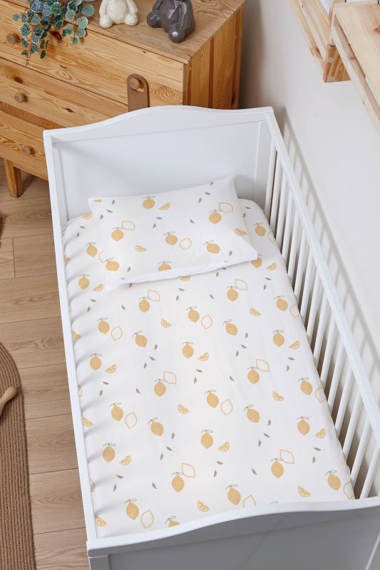 Organik Bebek Boy Lastikli Çarşaf Seti – Limon Çiçeği