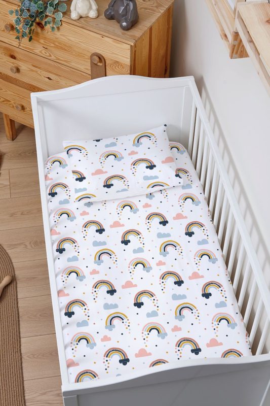 Organik Bebek Boy Lastikli Çarşaf Seti – Neşeli Bulutlar