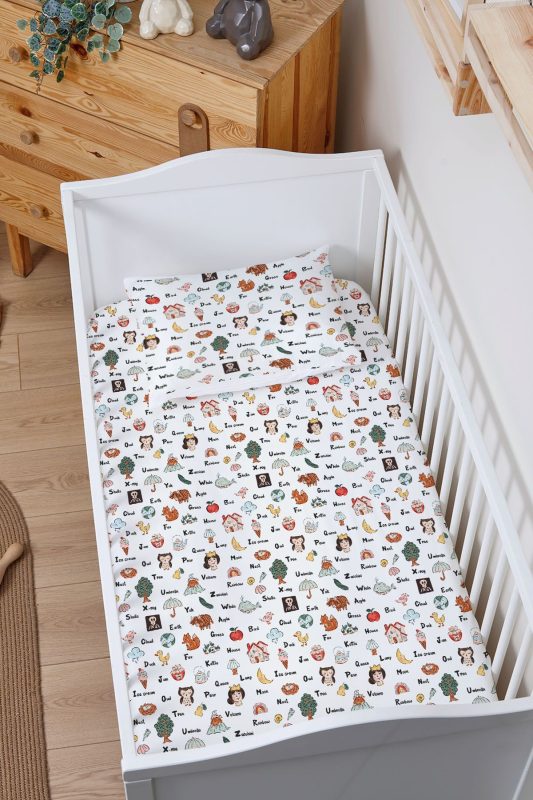 Organik Bebek Boy Lastikli Çarşaf Seti – Eğlenceli Kelimeler