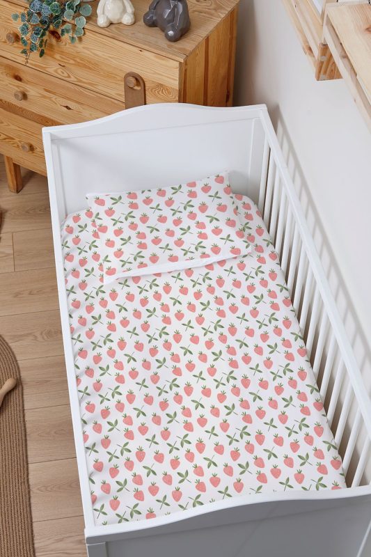 Organik Bebek Boy Lastikli Çarşaf Seti – Tatlı Çilek Bahçesi