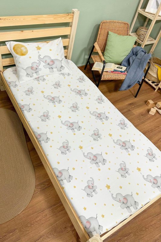 Organik Tek Kişilik Lastikli Çarşaf Seti – Hayalperest Fil