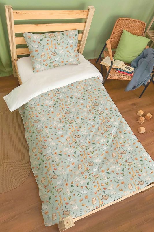Organik Bebek Boy Lastikli Çarşaf Seti – Safari Serisi – M Harfi