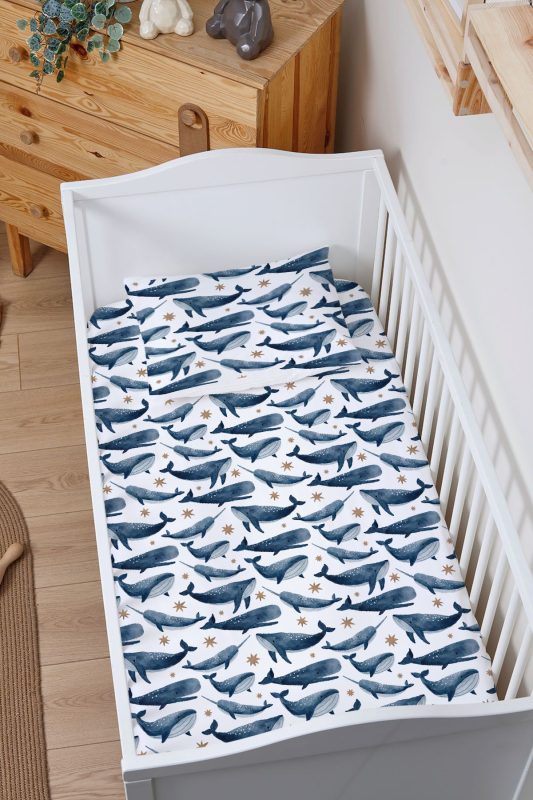 Organik Bebek Boy Lastikli Çarşaf Seti – Balina Masalı