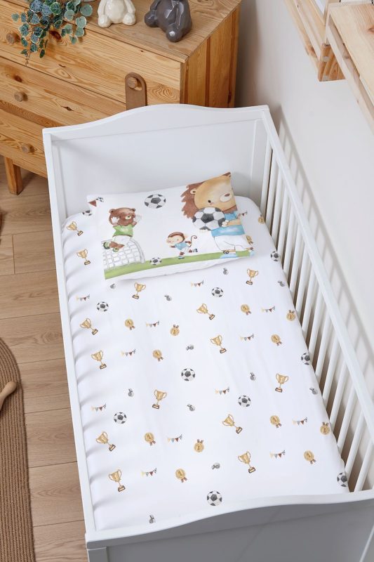 Organik Bebek Boy Lastikli Çarşaf Seti – Şampiyon Minik Aslan
