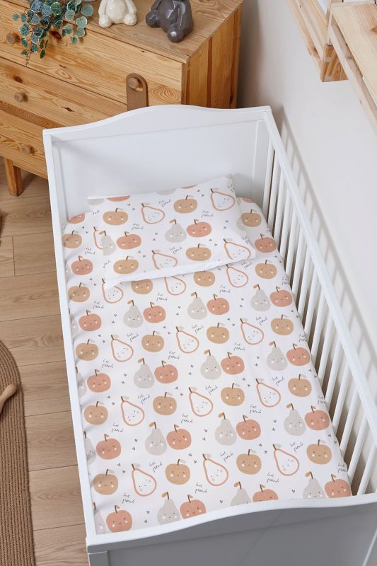 Organik Bebek Boy Lastikli Çarşaf Seti – Minik Tatlı Meyveler