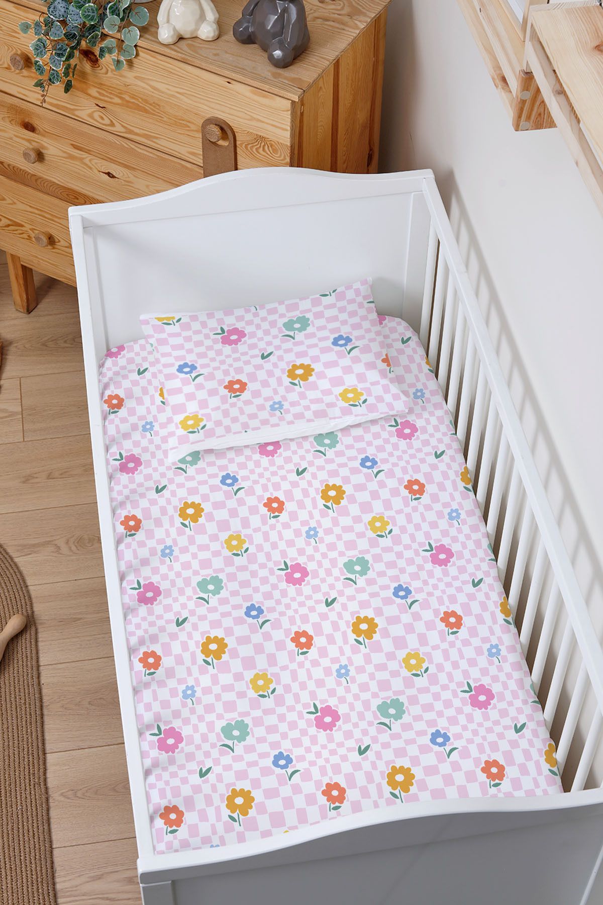 Organik Bebek Boy Lastikli Çarşaf Seti – Çiçek Bahçesi