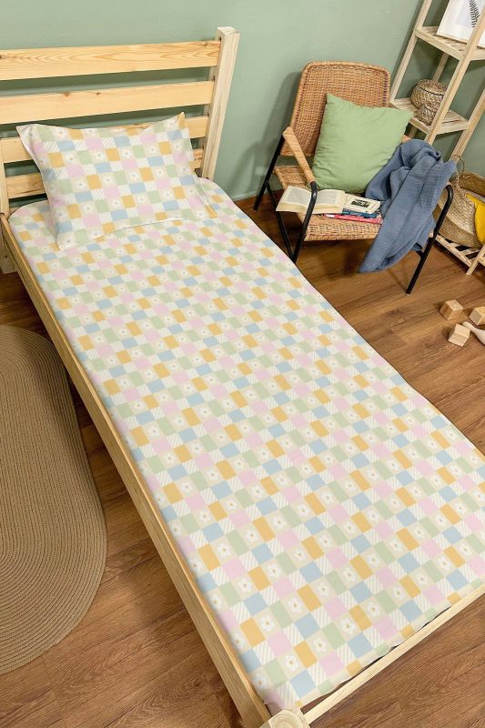 Organik Tek Kişilik Lastikli Çarşaf Seti – Ördek ve Tavuk Düşleri