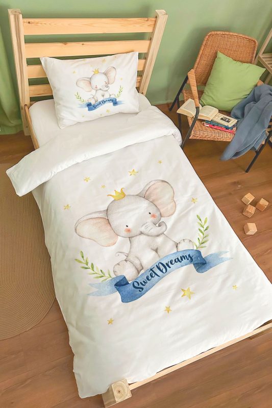 Organik Bebek Boy Lastikli Çarşaf Seti – Hayalperest Fil