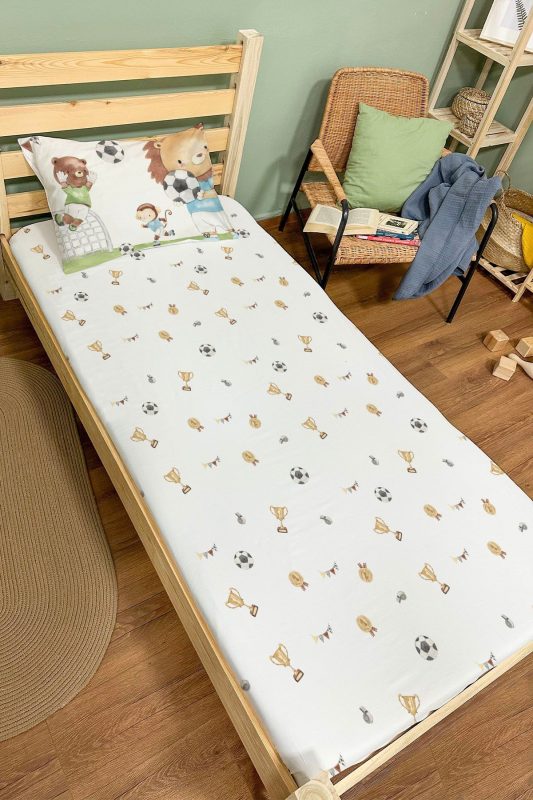 Organik Bebek Boy Lastikli Çarşaf Seti – Şampiyon Minik Aslan