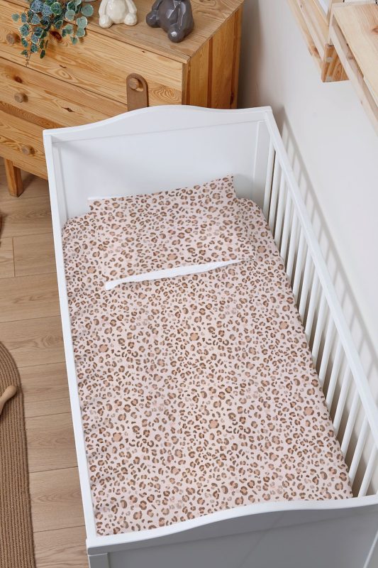 Organik Bebek Boy Lastikli Çarşaf Seti – Leopar Şıklığı