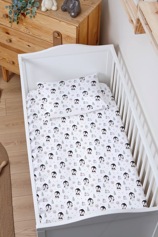 Organik Bebek Boy Lastikli Çarşaf Seti – Kutup Dostları Penguenler