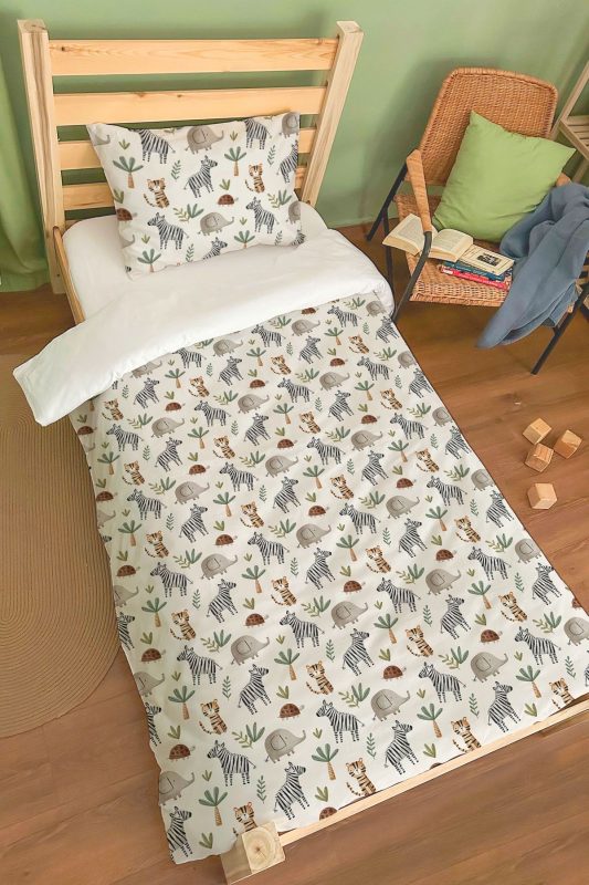 Organik Bebek Boy Lastikli Çarşaf Seti – Safari Serisi – V Harfi