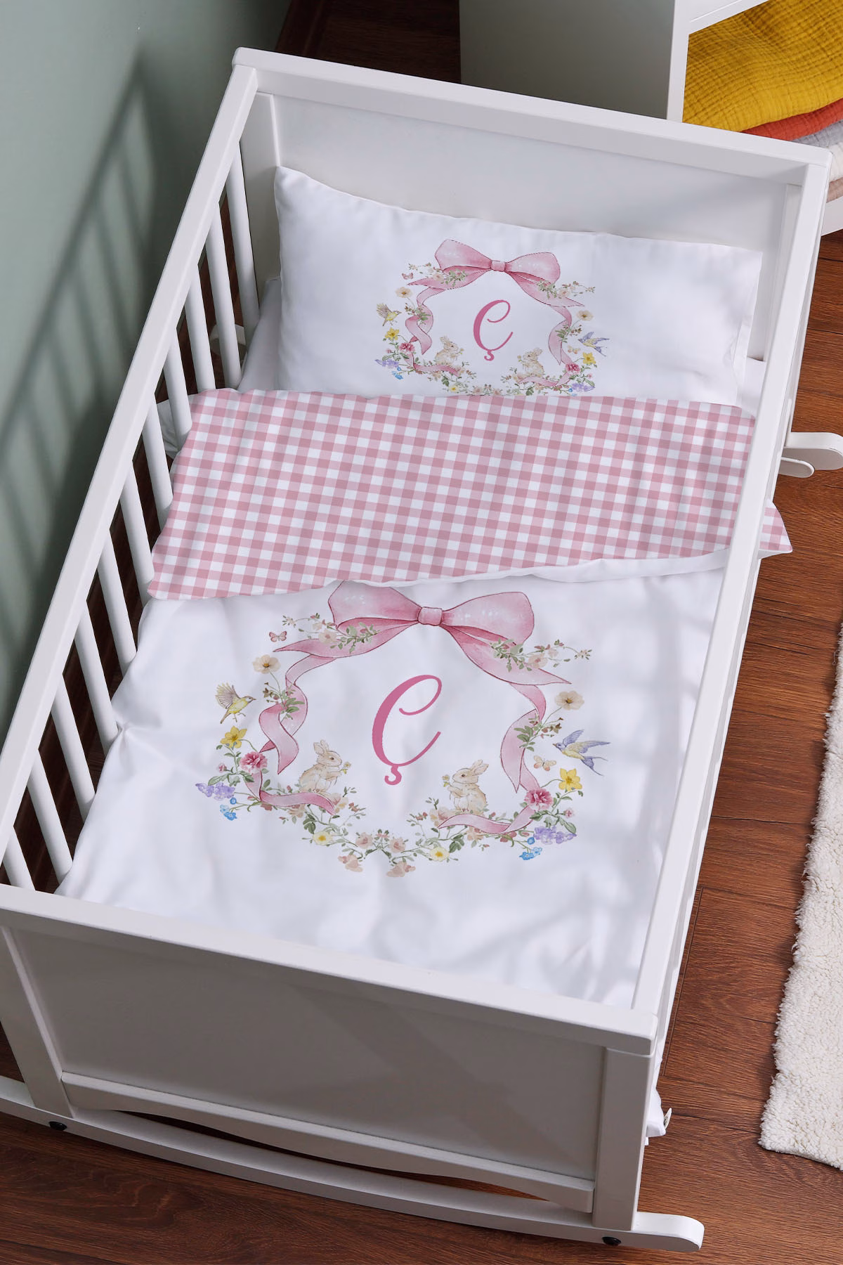 Anne Yanı Beşik Nevresim Takımı (60×100) – Floral Serisi – Ç Harfi