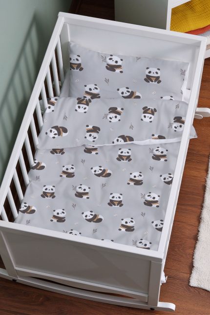 Organik Anne Yanı Nevresim Takımı (60×100) – Sevimli Bambu Dostu Panda