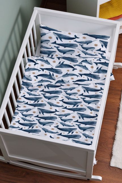 Organik Anne Yanı Nevresim Takımı (60×100) – Balina Masalı