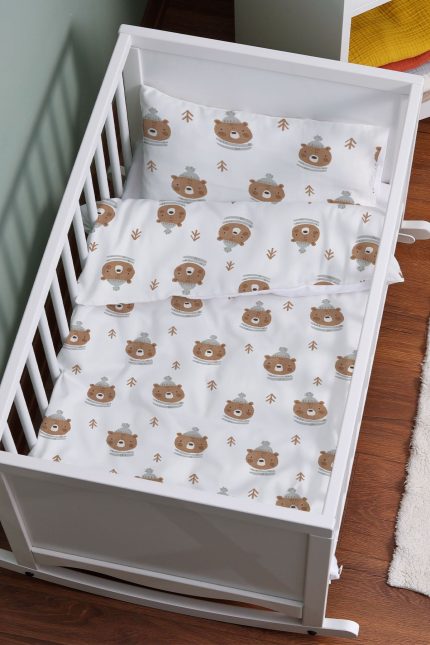 Organik Anne Yanı Nevresim Takımı (60×100) – Sevimli Kış Ayısı