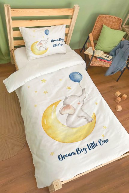 Organik Çarşaflı Bebek Nevresim Takımı (100×150) – Sevimli Orman Arkadaşım Fil
