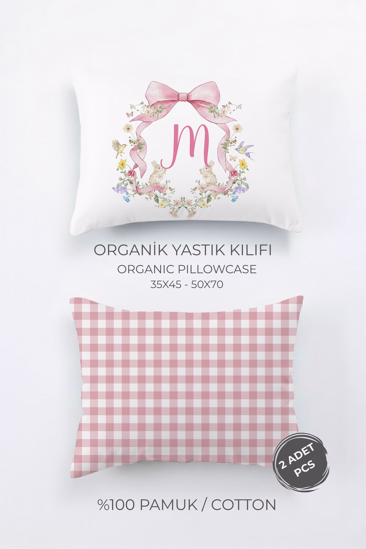 Organik 2’li Yastık Kılıfı Floral Serisi (50X70) – M Harfi