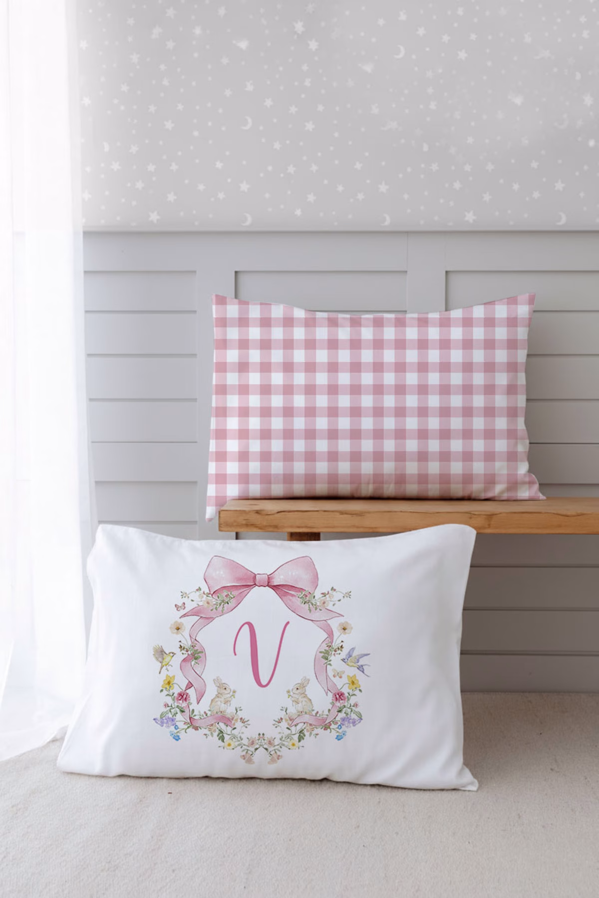 Organik 2’li Yastık Kılıfı Floral Serisi (50X70) – V Harfi