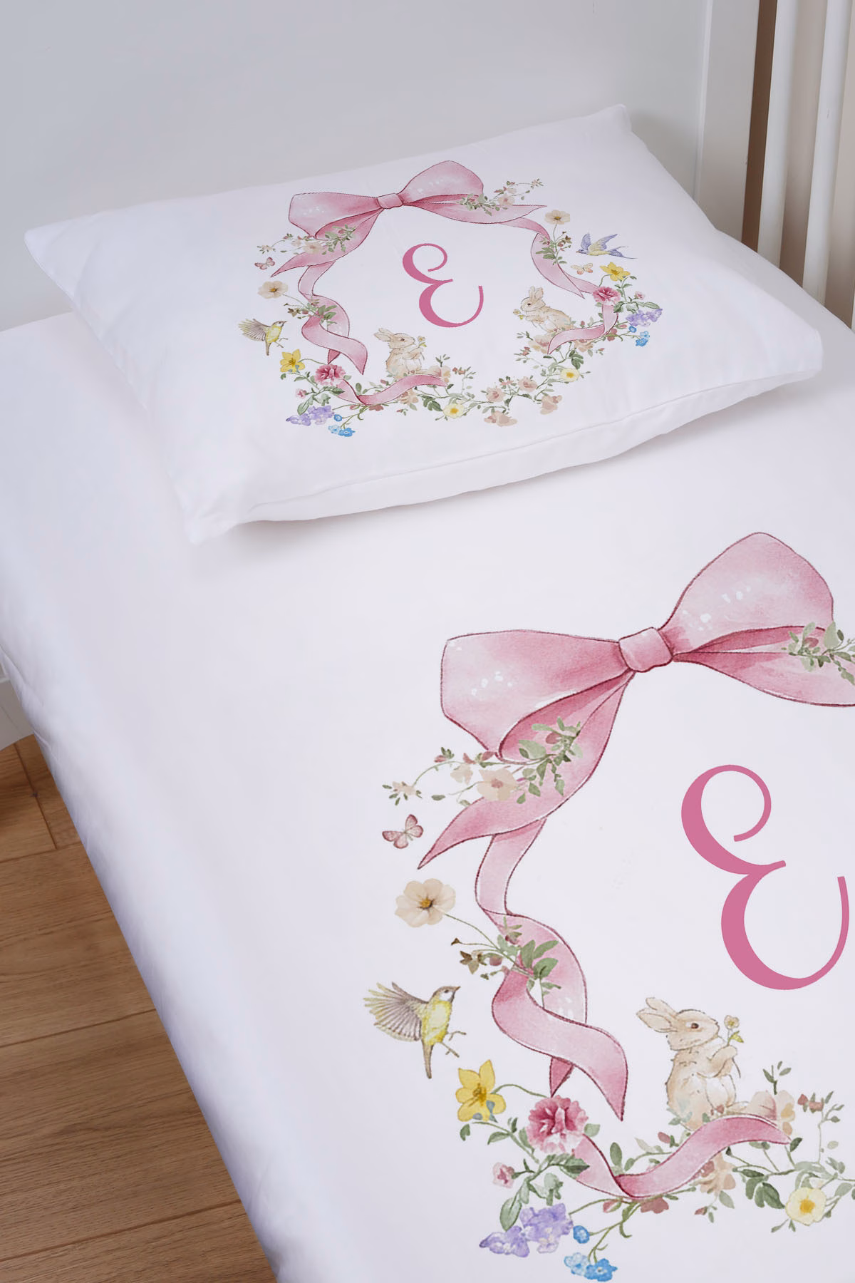 Organik Bebek Boy Lastikli Çarşaf Seti – Floral Serisi – E Harfi