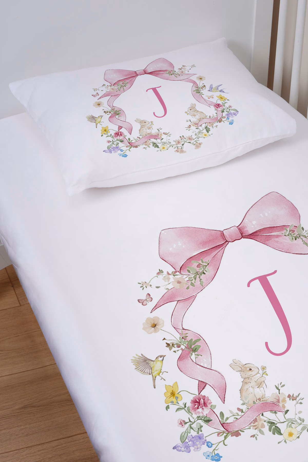 Organik Bebek Boy Lastikli Çarşaf Seti – Floral Serisi – I Harfi