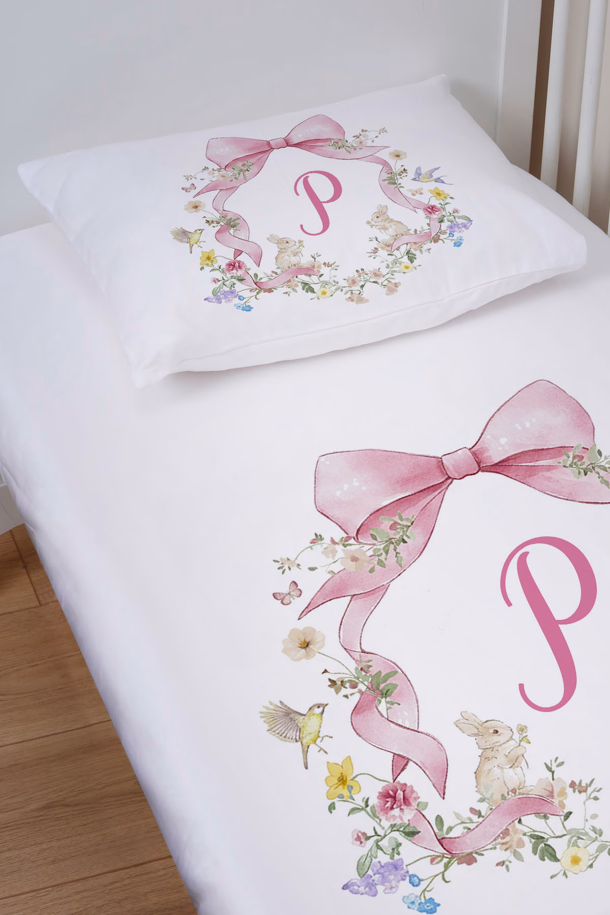 Organik Bebek Boy Lastikli Çarşaf Seti – Floral Serisi – P Harfi