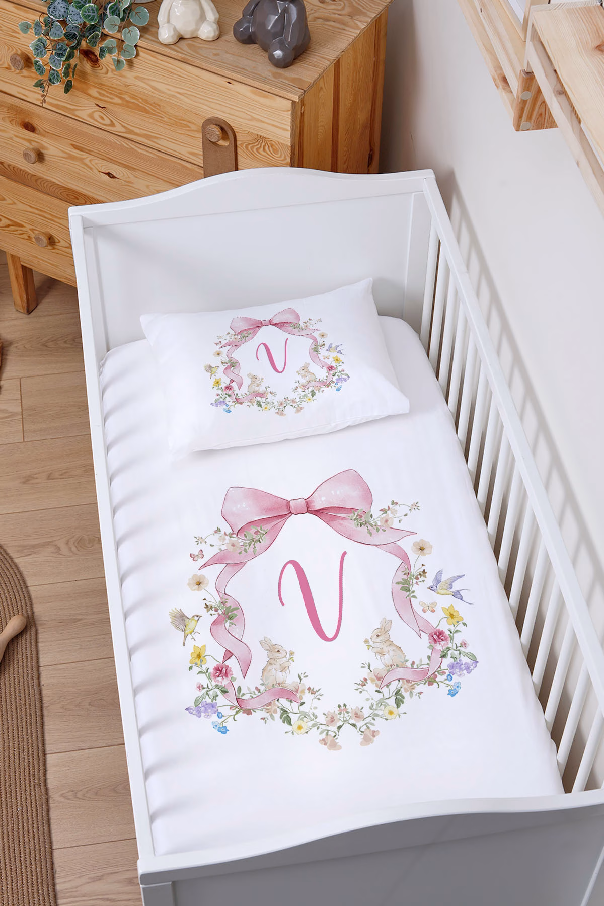 Organik Bebek Boy Lastikli Çarşaf Seti – Floral Serisi – V Harfi
