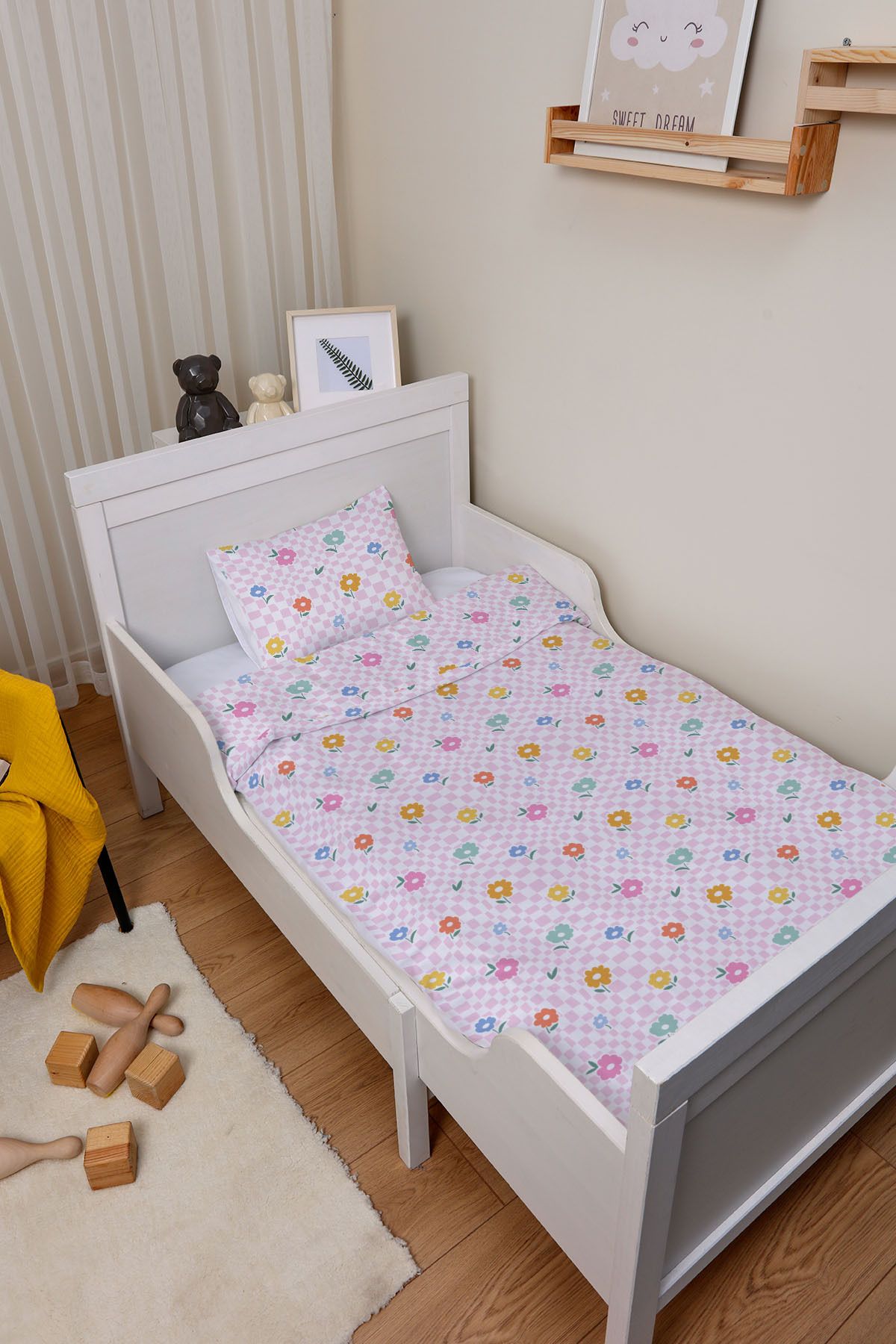 Sağlıklı ve Dayanıklı: Nevresim takımında kullanılan kumaş ve boyalar, bebekler için tamamen güvenlidir.