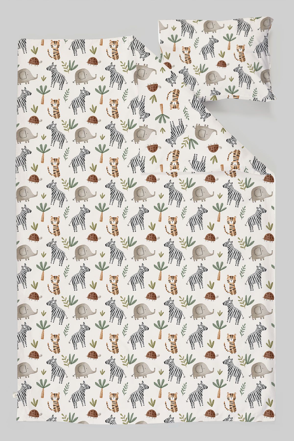 Bu nevresim takımı, %100 pamuk saten kumaştan üretilmiş olup, üzerine organik sertifikalı boyalarla çift taraflı baskı yapılmıştır.