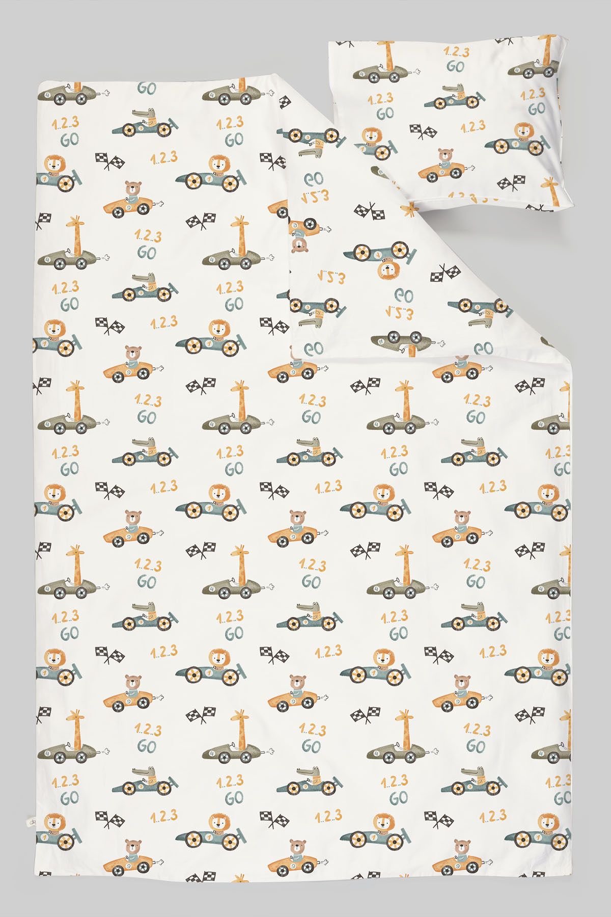 Organik Çarşaflı Bebek Nevresim Takımı (100×150) – Minik Yarışçılar