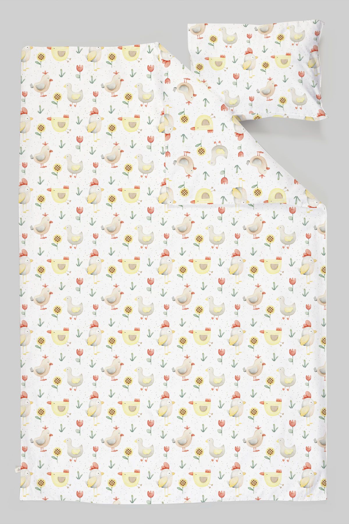 Organik Çarşaflı Bebek Nevresim Takımı (100×150) – Ördek ve Tavuk Düşleri