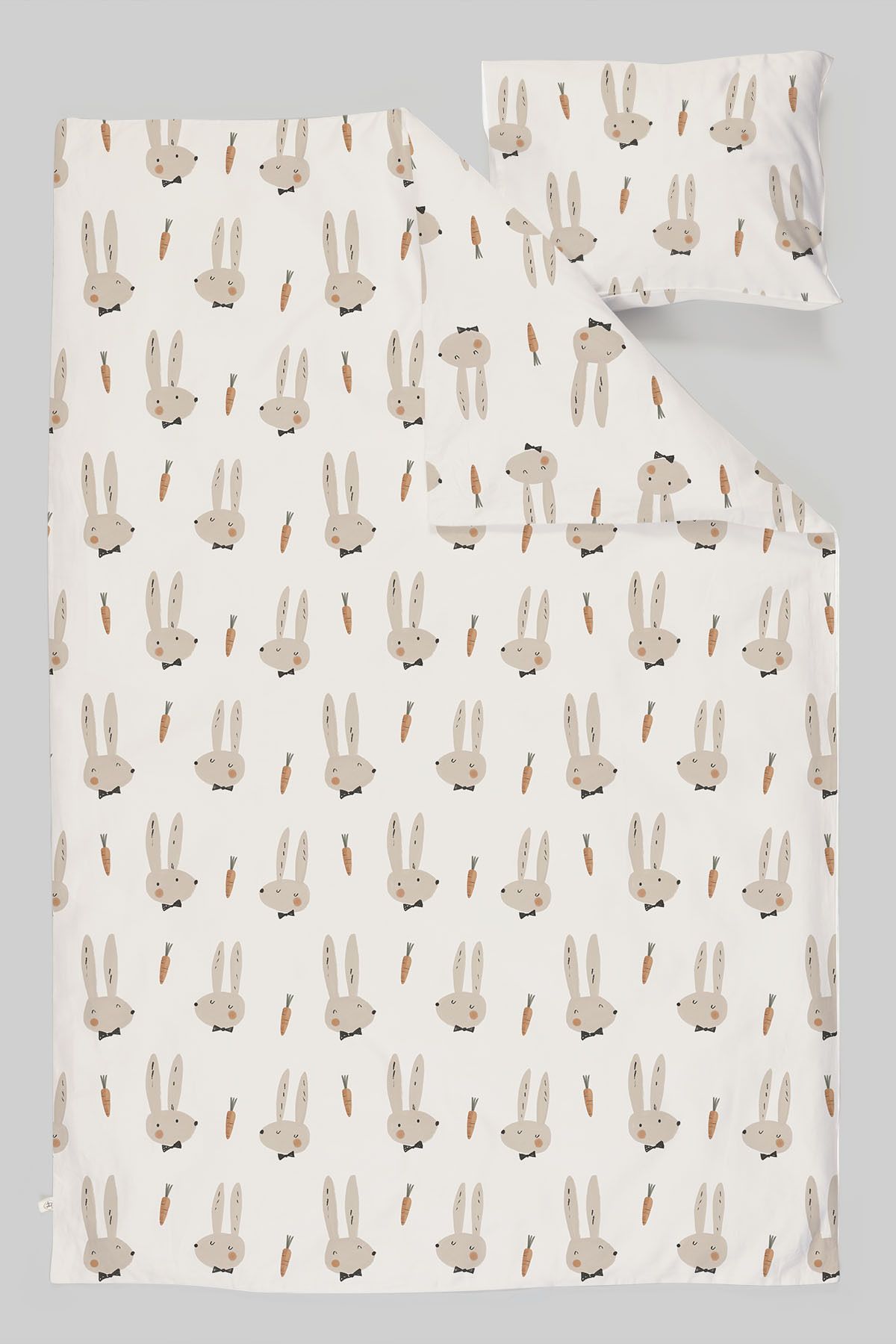 Organik Bebek Boy Lastikli Çarşaf Seti – Papyonlu Tavşan
