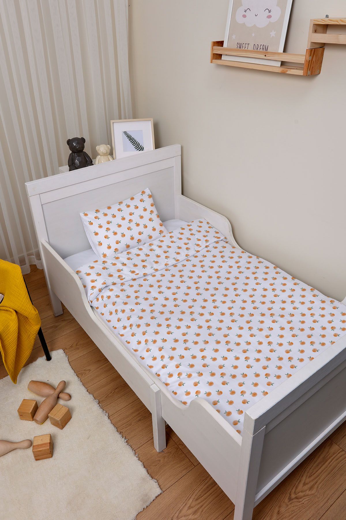 Organik Çarşaflı Bebek Nevresim Takımı (100×150) – Portakal Bahçesi