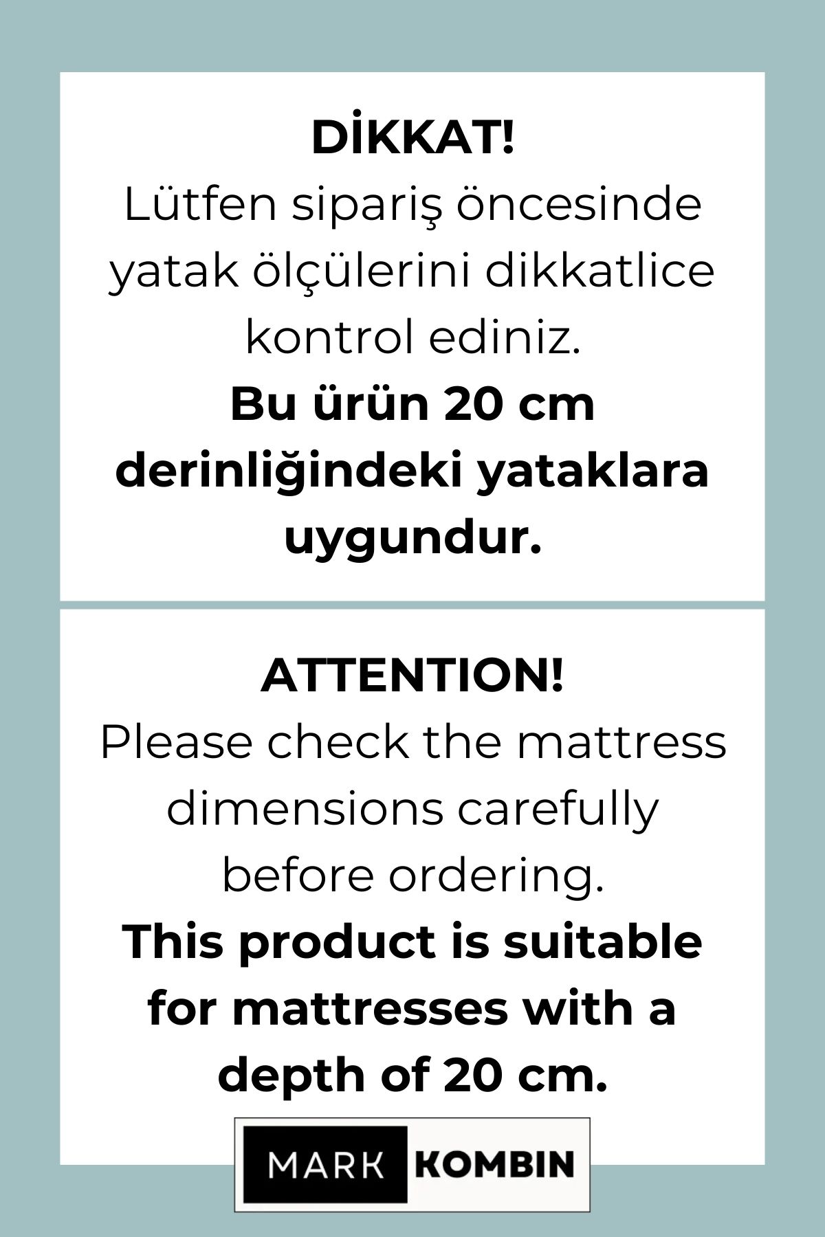 Yastık kılıfı ölçüleri: 55×95+15cm, 60×120+15cm, 70×110+15cm, 70×130+15cm, 80×140+15cm olan ürünlerimizde 35×45 cm yastık kılıfı, 80×160+20cm, 80×180+20cm, 90×190+20cm, 100×200+20cm, 120×200+20cm ve 140×200+20 olan ürünlerimizde 50×70 cm yastık kılıfı bulunmaktadır.