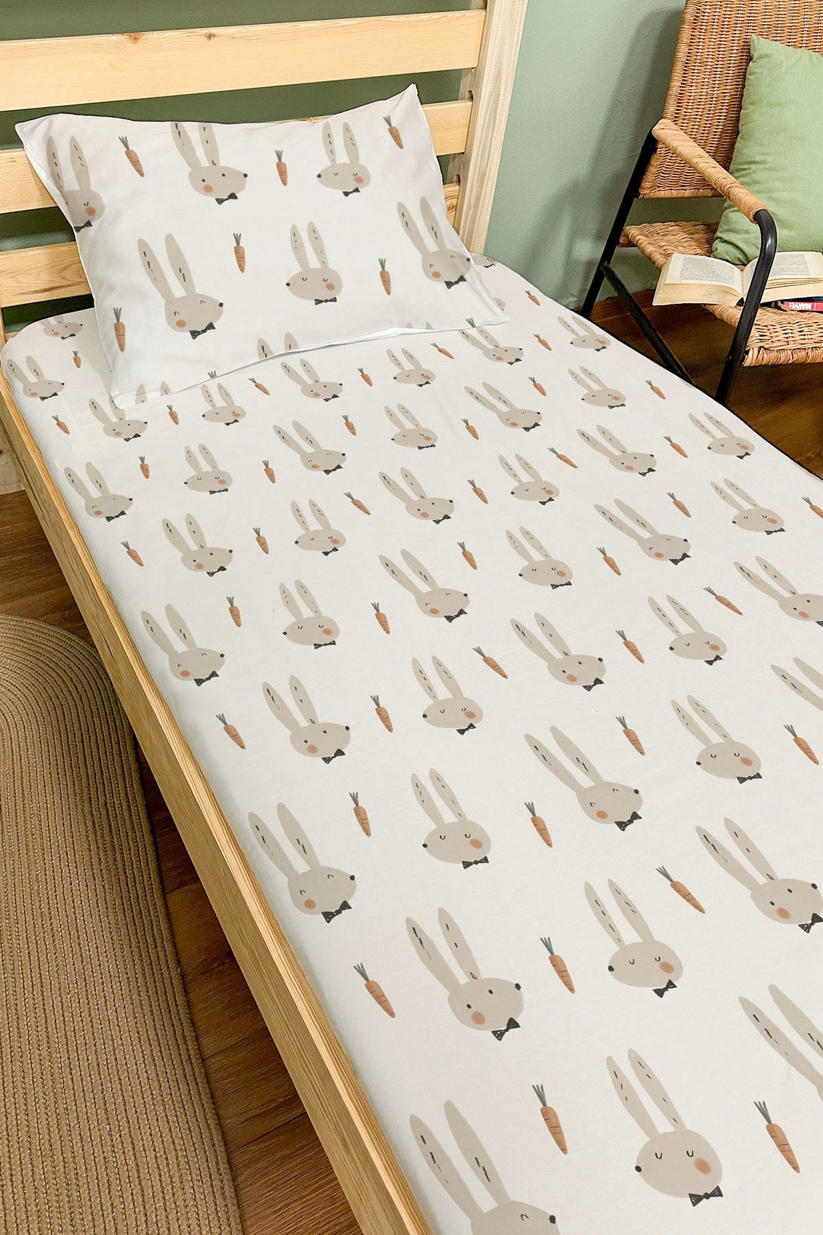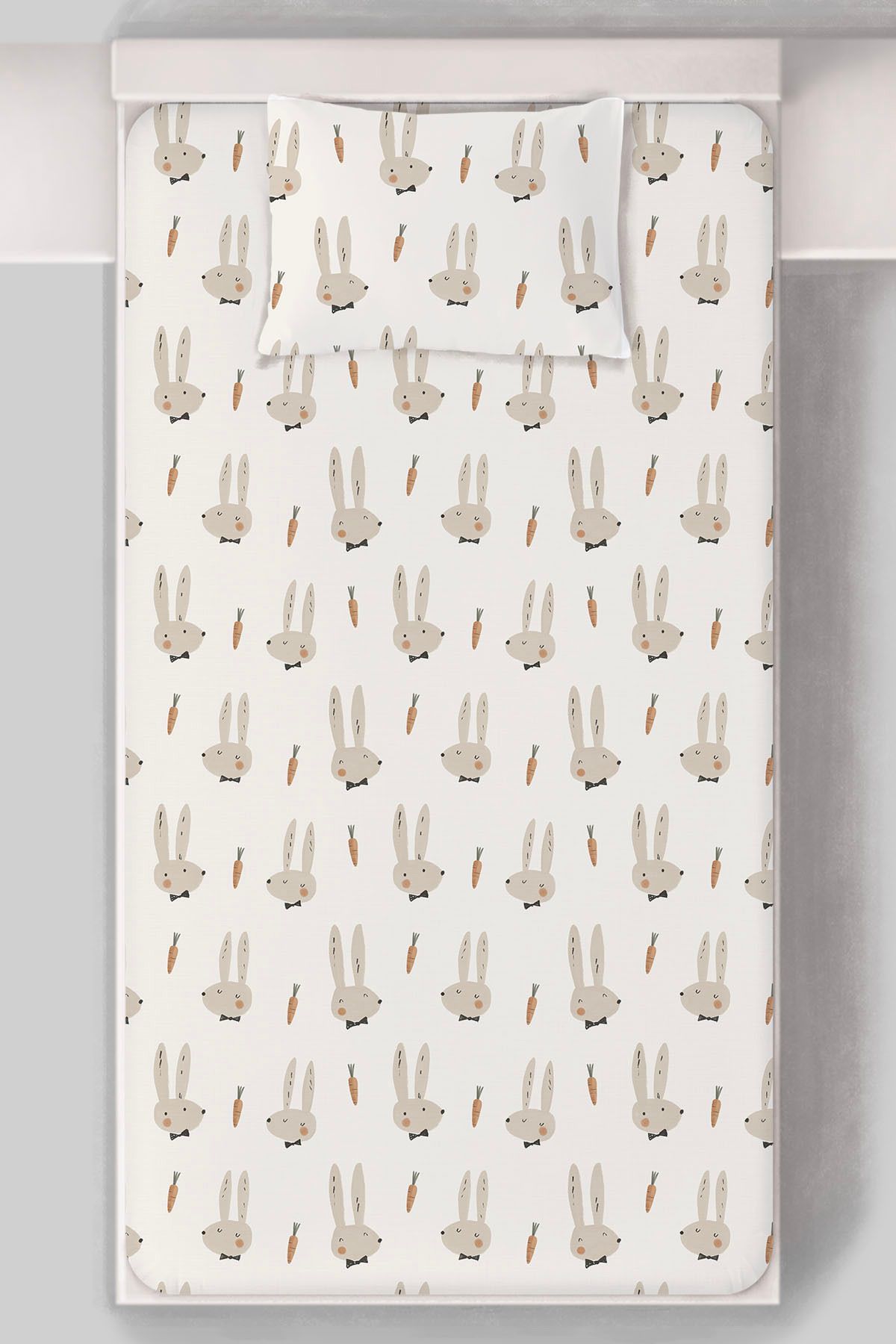Organik Tek Kişilik Lastikli Çarşaf Seti – Papyonlu Tavşan
