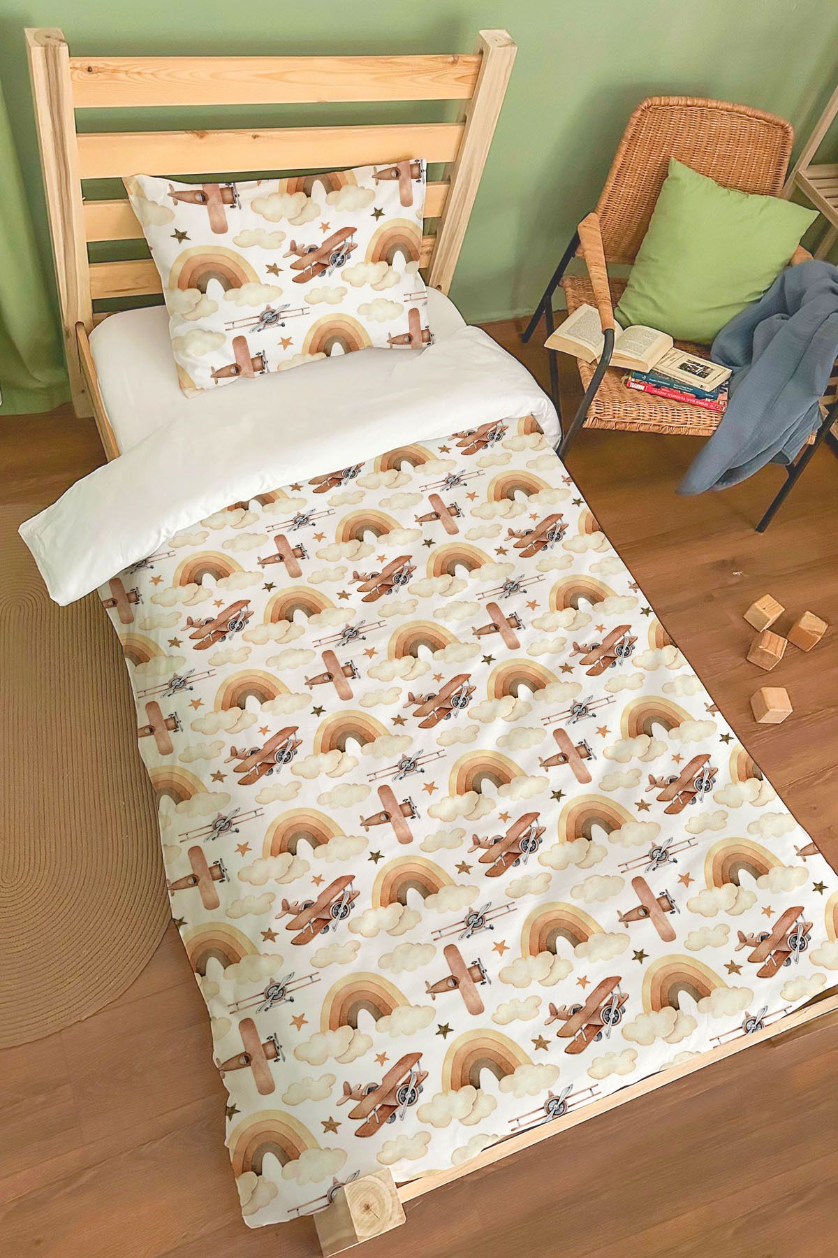 Organik Tek Kişilik Nevresim Takımı (160×220) – Uçan Hayal